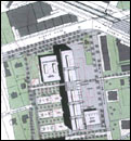 L'implantation du Bâtiment sous forme de « pavillons en ordre contigus », orientés est-ouest, génère deux types d'espaces publics majeurs à l'échelle du quartier.