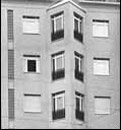 Le principal élément échappant à la symétrie est la verticale de fenêtres étroites, marquant la possibilité d'extension future de l'immeuble sur la parcelle voisine.